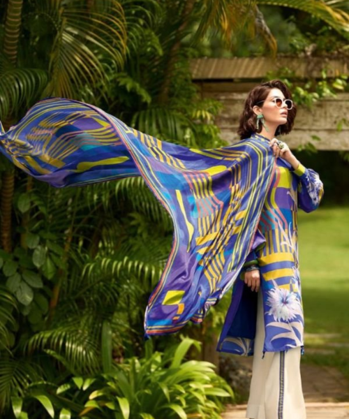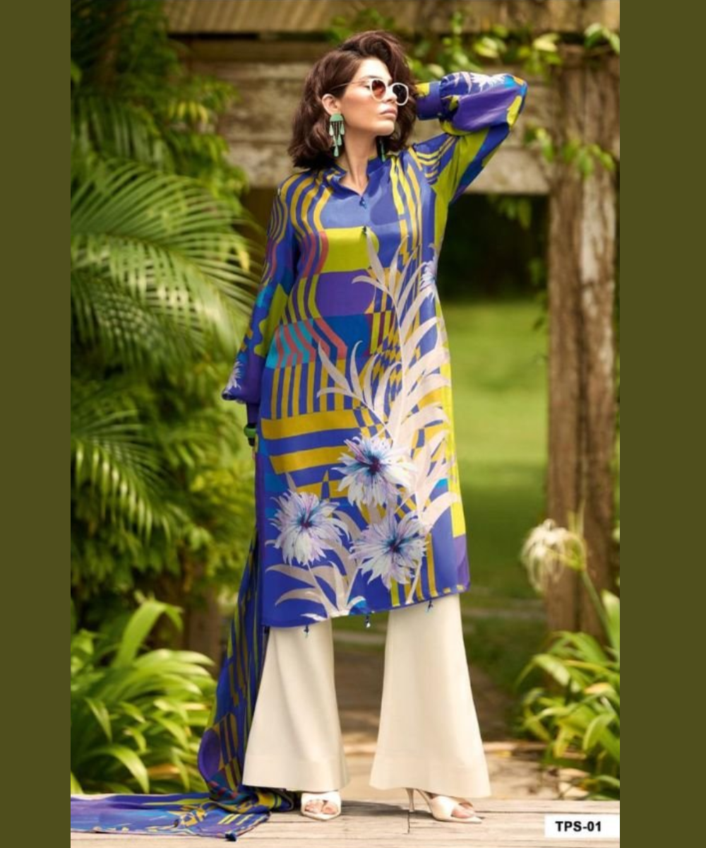 This Blue Yellow Printed Royal Silk Suit is designed for women who love vibrant and refreshing styles. Made from high-quality silk fabric, it feels smooth on the skin and offers a flattering fit. The combination of blue with yellow geometric and floral prints gives it a unique and eye-catching look. Ideal for daytime events, casual outings, or festive gatherings, this suit comes with a coordinated dupatta and comfortable bottoms. Its lightweight and breathable nature ensures all-day comfort. Pair it with stylish sunglasses and minimal jewelry for a modern ethnic look.