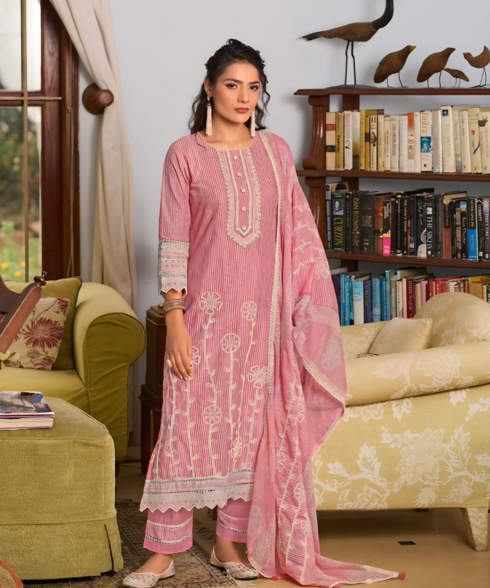 Upgrade your wardrobe with this beautifully crafted cotton suit featuring elegant thread work. Made from high-quality breathable cotton, it ensures all-day comfort while keeping you stylish. Perfect for summer wear, casual outings, and festive occasions.