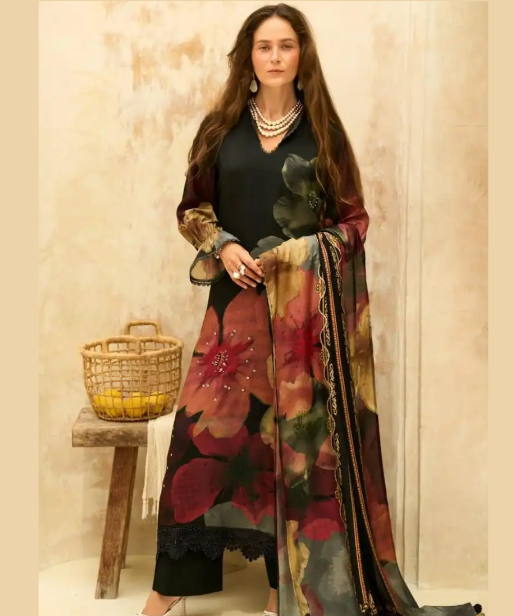 Experience timeless elegance with this Pure Muslin Crepe Suit, crafted from soft, breathable fabric and enhanced with beautiful floral prints. Its lightweight texture and graceful fall make it perfect for festive occasions, casual outings, and everyday ethnic wear.